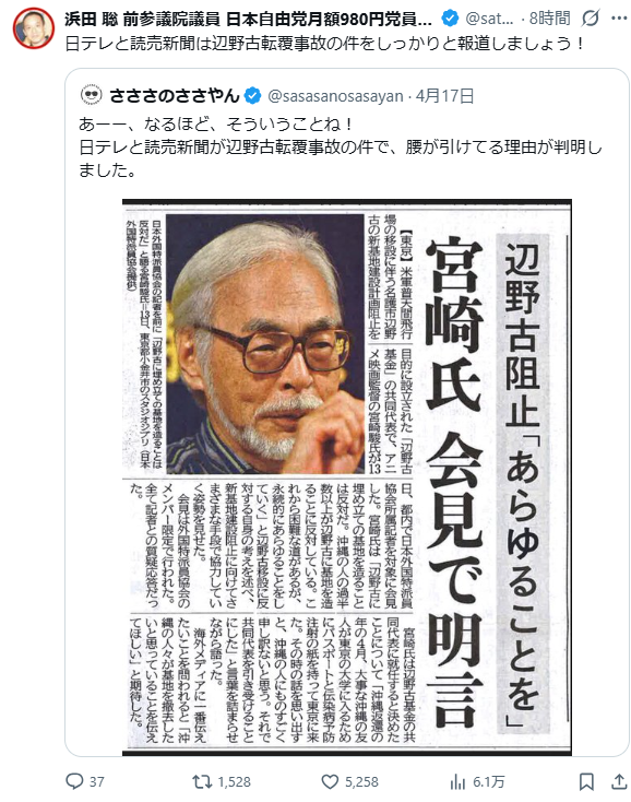 - 日テレと読売新聞は辺野古転覆事故の件をしっかりと報道しましょう!
