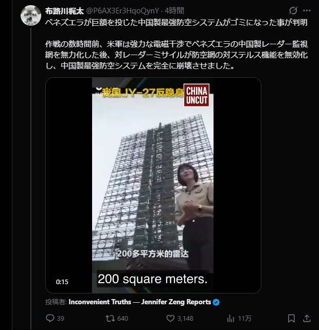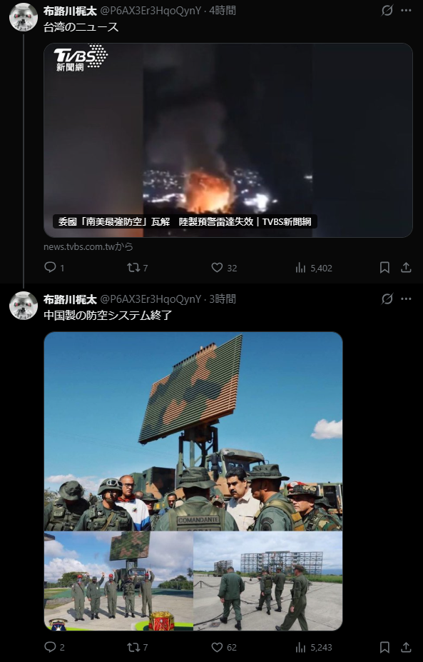 2026年1月5日 / 最終更新日 : 2026年1月5日 文明のターンテーブル ブログ ベネズエラが巨額を投じた中国製最強防空システムがゴミになった事が判明作戦の数時間前、米軍は強力な電磁干渉でベネズエラの中国製レーダー監視網を無力化した後、対レーダーミサイルが防空網の対ステルス機能を無効化し、 ベネズエラが巨額を投じた中国製最強防空システムがゴミになった事が判明作戦の数時間前、米軍は強力な電磁干渉でベネズエラの中国製レーダー監視網を無力化した後、対レーダーミサイルが防空網の対ステルス機能を無効化し、中国製最強防空システムを完全に崩壊させました。中国製の防空システム終了 FacebookXBlueskyHatenaCopy コメントを残すメールアドレスが公開されることはありません。 ※ が付いている欄は必須項目ですコメント ※ 上の計算式の答えを入力してください 名前 メール サイト 次回のコメントで使用するためブラウザーに自分の名前、メールアドレス、サイトを保存する。 Δ