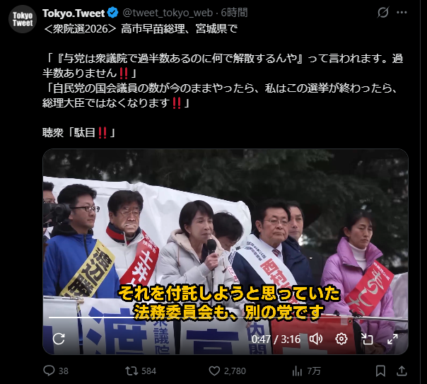 聴衆「駄目‼️」 pic.twitter.com/enlAaeXU4R— Tokyo.Tweet (@tweet_tokyo_web) January 27, 2026