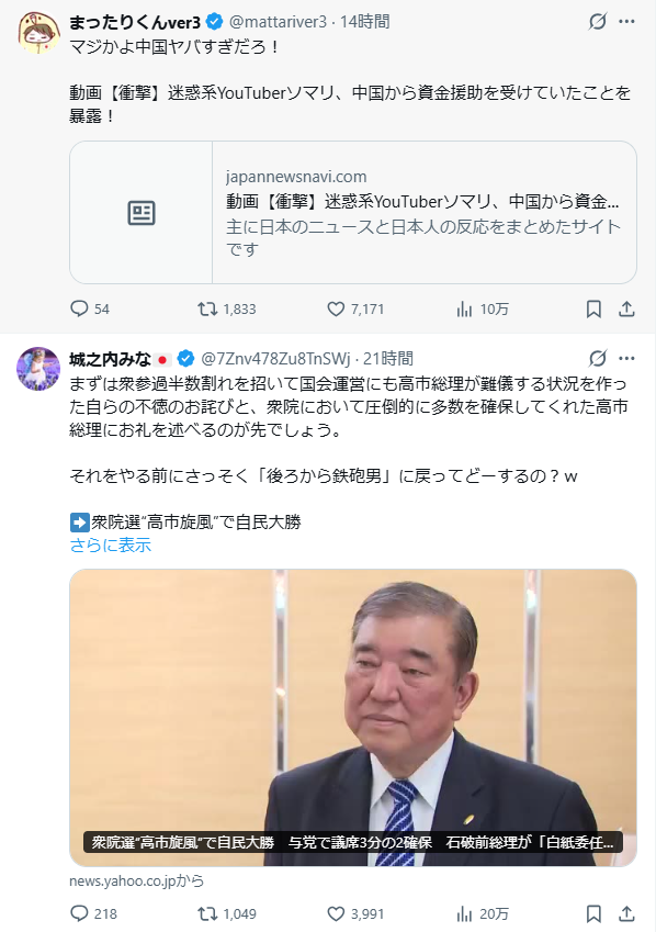 高市首相及び総理大臣及び自民党総裁は、岩屋毅と石破茂に対して、以下の様な言動を続ける=今回の総選挙において自民党(及び高市総裁が政治生命を賭して)が国民に対して掲げた真摯な公約(だからこそ史上最高の歴史的な大勝を自民党にもたらした)に反する言動と行為を取るなら、自民党を除名すると通告しなければならない。
