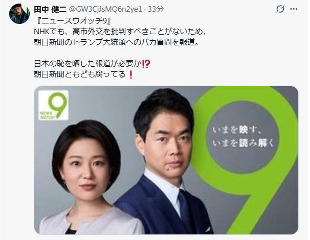 2026年3月20日 / 最終更新日 : 2026年3月20日 文明のターンテーブル ブログ NHKでも、高市外交を批判すべきことがないため、 朝日新聞のトランプ大統領へのバカ質問を報道。日本の恥を晒した報道が必要か⁉️ 朝日新聞ともども腐ってる❗️ X コメントを残すメールアドレスが公開されることはありません。 ※ が付いている欄は必須項目ですコメント ※ 上の計算式の答えを入力してください 名前 メール サイト 次回のコメントで使用するためブラウザーに自分の名前、メールアドレス、サイトを保存する。 Δ